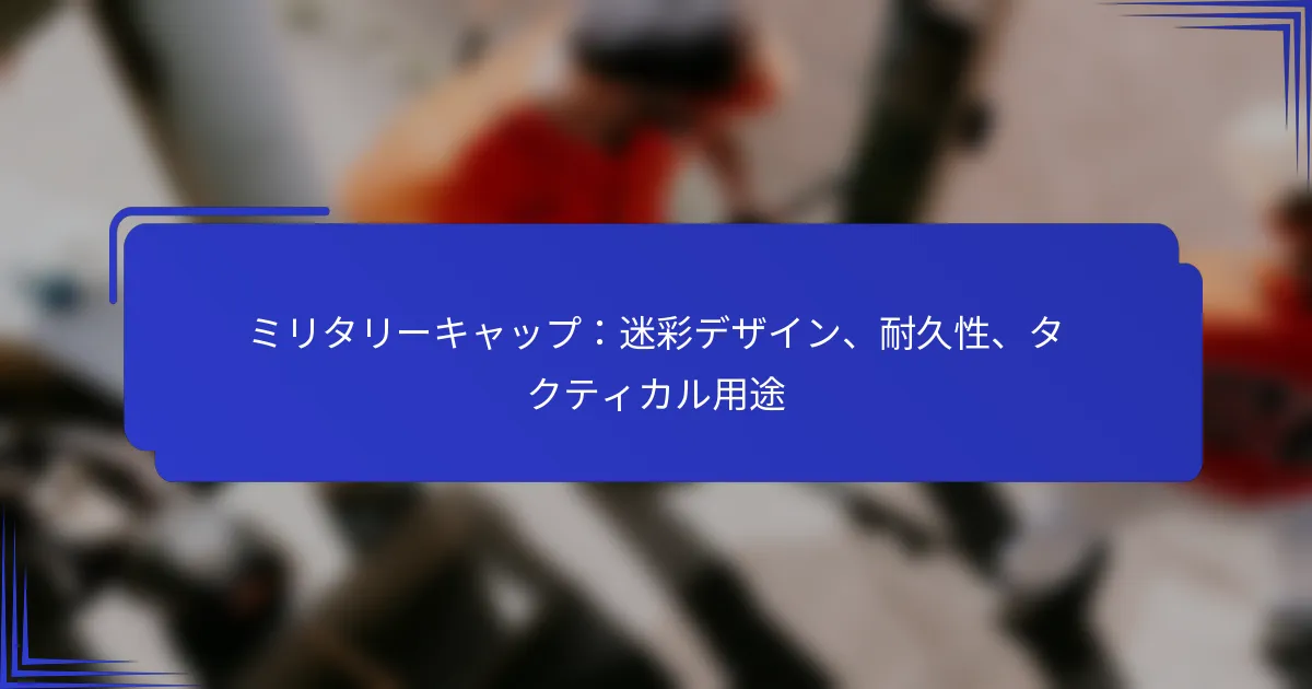 ミリタリーキャップは、戦術的な使用における機能性と耐久性を高めるために特定の特徴を備えています。主な要素には、効果的な迷彩パターン、高品質の素材、頑丈な構造技術、そして軍人のニーズに応える機能的なデザインが含まれます。